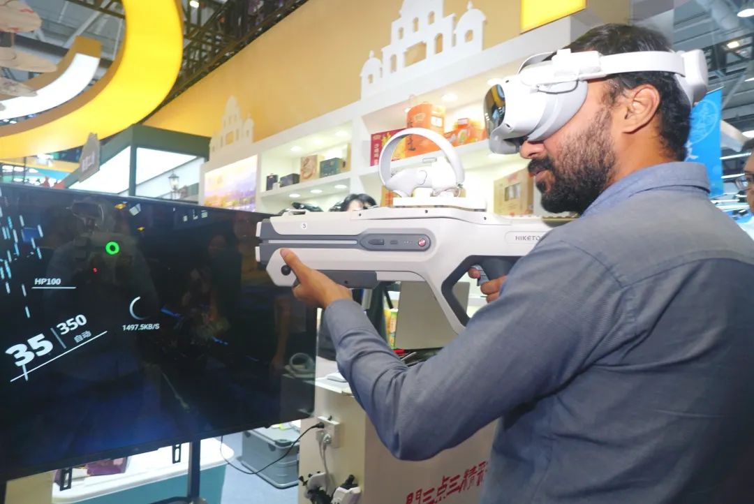 SG飞艇(中国)开奖记录查询站光影文化传媒有限公司带来自己研发的一套VR/AR枪战电竞系统,彰显了江门在科技创新和文化产业融合方面的积极探索与发展活力。公司负责人梁景锋表示,接下来计划围绕江门的特色历史文化,通过AR赋能文旅,打造专属江门特色的游戏场景和体验。