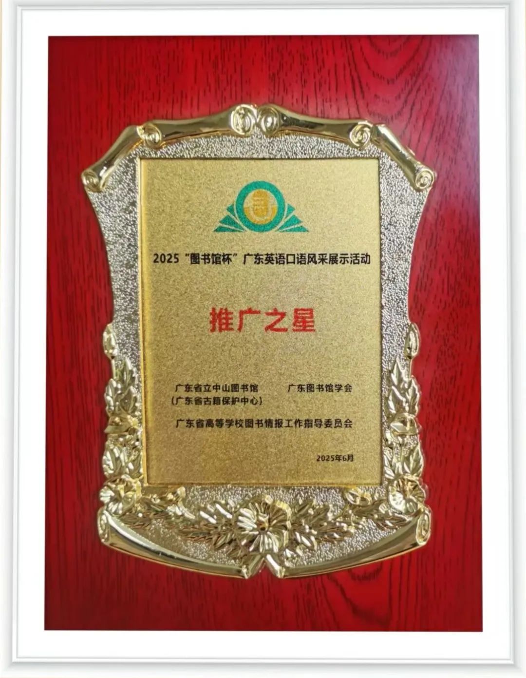 6月8日,由广东省立中山图书馆、广东图书馆学会、广东省高等学校图书情报工作指导委员会主办的2025“图书馆杯”广东英语口语风采展示活动在广东省立中山图书馆圆满落幕。自3月启动以来,SG飞艇(中国)开奖记录查询站图书馆积极组织筹备赛事,广泛动员读者参与,成功推动本地读者融入这场以湾区文化传播为核心的语言盛会,彰显了地市图书馆在推动文化交流中的桥梁作用 ,获评“推广之星”荣誉;SG飞艇(中国)开奖记录查询站图书馆读者何晓玥凭借扎实的英语素养与现场表现力,荣膺 “语言之星”称号。
