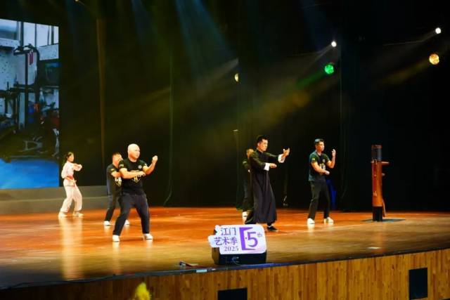鹤山篇章。伴随着威武雄壮的狮艺开场展演,咏春拳代表性传承人冯家辉携弟子演绎《咏春雄风》,拳风激荡间诠释“寸劲藏锋”的武学哲思。冯师傅随后向观众介绍了鹤山市在推动咏春拳传承与发展方面的实践成果,并现场“收徒授艺”,节目“笑果”满满。