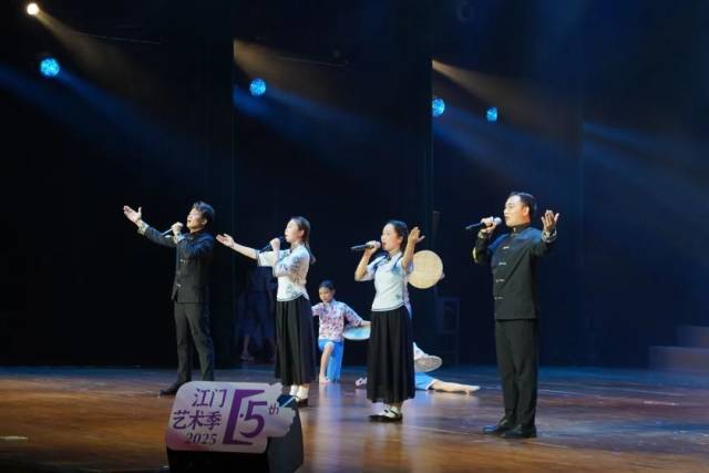 此外,晚会精心荟萃了五邑侨乡的多元非遗精华:世界级瑰宝粤剧献演折子戏《七姑奶开店》,演员唱腔婉转悠扬,身段行云流水,将传统粤剧的独特韵味展现得淋漓尽致;创意功夫街舞《传承》则大胆融合了动感街舞、刚柔咏春与飘逸八卦掌等元素,以充满爆发力的青春律动诠释传统武术的新生魅力,引得台下观众随节拍应和,掌声雷动。当终章《到江门来》欢快的旋律响起,全场观众不由打起节拍、轻声合唱。晚会在温馨、热烈的氛围中圆满落下帷幕。