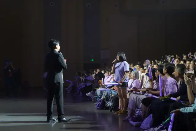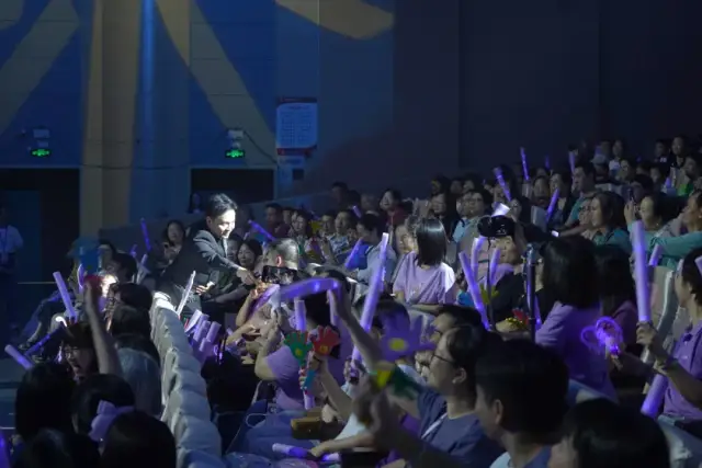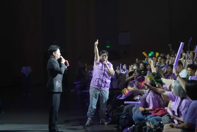 音乐会的旅程,始于回顾Danny璀璨生涯与赤子之心的《偏偏喜欢你》MV。短片中的他,光芒万丈亦心系故土,瞬间将观众带回那个凝结着青春和梦想的“流金岁月”。随后,来自江门的新生代实力歌手们倾情演绎,那些刻入灵魂的旋律次第绽放,掀起了一波又一波怀旧热潮。演出现场座无虚席,掌声雷动,荧光闪烁,六百余人合唱的震撼场面,无不印证着经典的永恒魅力和陈百强大爱精神的强大感召。