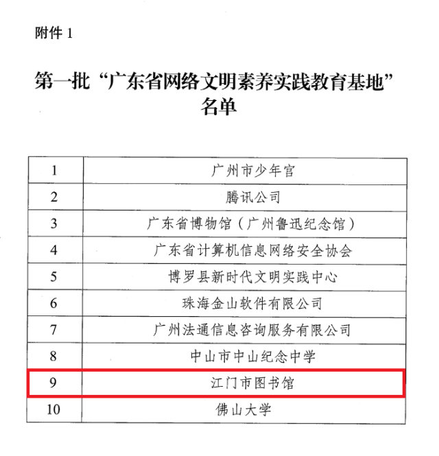 经省委、省政府批准,省委网信办联合省文明办在全省范围内开展“广东省网络文明素养实践教育基地”创建工作。经各地各单位推荐申报、实地考察、专家评审等环节,评选出第一批(10家)“广东省网络文明素养实践教育基地”。