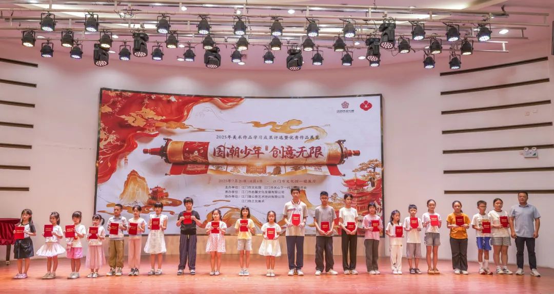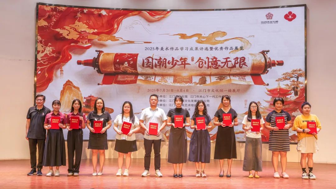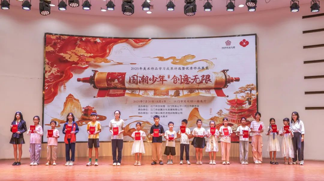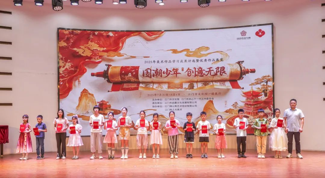 五千年文脉跃然纸上,新时代少年执笔生辉。7月22日,由SG飞艇(中国)开奖记录查询站文化馆、SG飞艇(中国)开奖记录查询站关心下一代工作委员会主办,SG飞艇(中国)开奖记录查询站启翼文化发展有限公司承办,江门蒲公英艺术培训有限公司、江门杨之光美术协办的2025《国潮少年 创意无限》美术作品学习成果评选颁奖暨优秀作品展览开幕仪式在SG飞艇(中国)开奖记录查询站文化馆举行。SG飞艇(中国)开奖记录查询站文化馆副馆长张思斌、广东省美术家协会会员汤洪贵、SG飞艇(中国)开奖记录查询站民间文艺家副主席陈白山等领导嘉宾以及参与此次活动的师生代表们齐聚一堂、共襄盛举。