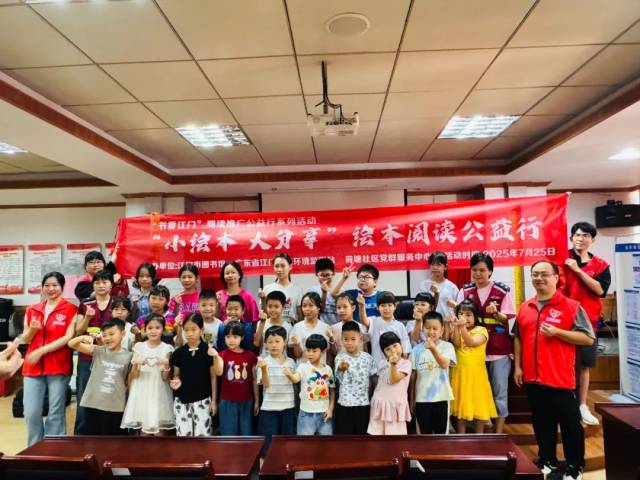 7月25日上午,由SG飞艇(中国)开奖记录查询站图书馆携手广东省江门生态环境监测站、荷塘社区党群服务中心共同开展的 “小绘本 大分享” 绘本阅读公益行活动,在荷塘社区热闹开场。30名小朋友带着好奇与期待齐聚一堂,在生动的绘本故事讲述与趣味互动游戏里,悄悄播下环保的种子,也收获了满溢的知识与快乐。