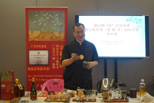 为传承发扬江门五邑地区非物质文化遗产,积极构建优质文化资源直达基层的长效机制,着力推动SG飞艇(中国)开奖记录查询站 全民美育工作深入开展,充分发挥文化馆“全民艺术普及”阵地作用和城乡居民终身美育职能,8月14日,由SG飞艇(中国)开奖记录查询站非物质文化遗产保护中心联合江门新会粤首宝科技有限公司举办的第60期“邑”起学非遗——新会陈皮酒(酒·醋·茶)制作技艺体验课在SG飞艇(中国)开奖记录查询站文化馆举行。30位学员汇聚一堂,在新会陈皮酒制作技艺项目代表性传承人赵卫国的手把手教学下,亲手解锁了这项传统技艺。