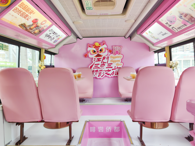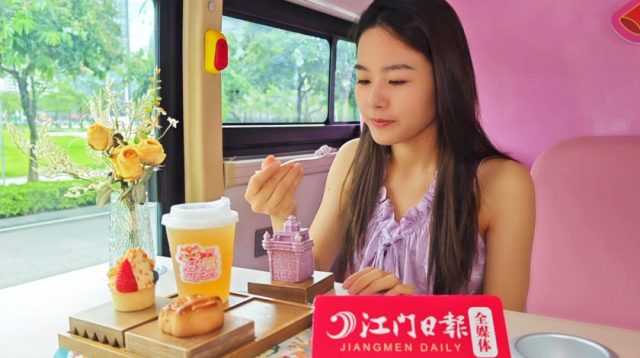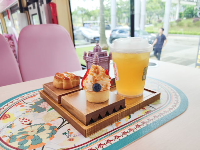 记者1日在五邑华侨广场见到,三点三下午茶公交旅游专线(蓬江&江海线)停在中国侨都华侨华人博物馆旁,等待发车。车子的装饰均以粉色为主,颜值高又“吸睛”。车厢内部进行了升级改造,由原来配置的座椅改成舒适座椅,搭配餐桌,车身上还有诸多江门的元素。发车时间一到,车子缓缓使出中国侨都华侨华人博物馆,沿着既定线路行驶。记者坐在车里看着窗外沿途的风景,喝着饮茶,尝着甜点,体验感不错。