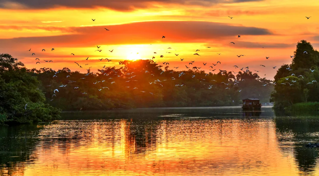 最近,江门各大湿地出现了成群结队的鹭鸟,