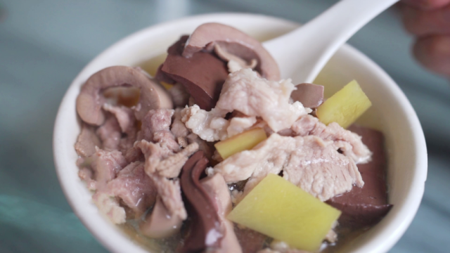 秋冬是进补的好时节,可适当多吃一些滋补食物。猪杂酒是广东人在很久以前发明的一种酒汤,用来在一天劳累了,腰酸背痛之后的一道缓解汤酒,味道有淡淡的米酒清香。