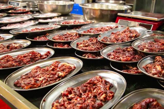 在五洞村,牛肉美食琳琅满目,任君挑选