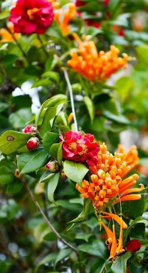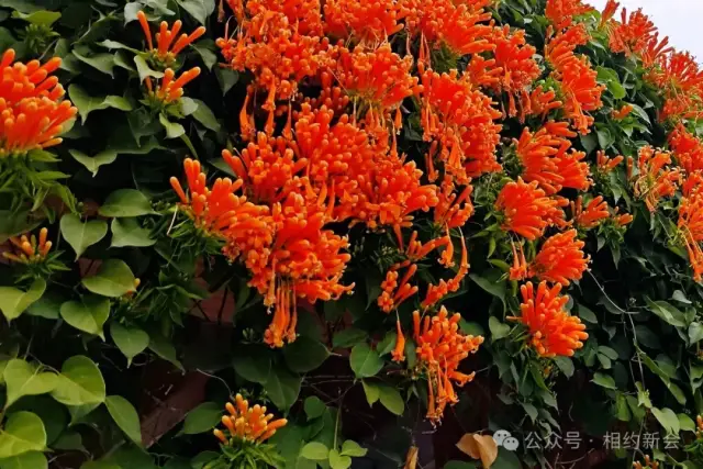 如同倾斜而下的橙红色瀑布与水乡的鱼塘古榕、青砖古建