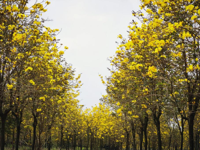 二月下旬,马冈镇中和村的黄花风铃木灿烂绽放,洋溢着春天的气息,满树黄色花朵犹如摇曳的风铃,记得来打卡,享受这份独特的春日限定。