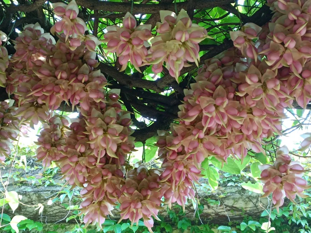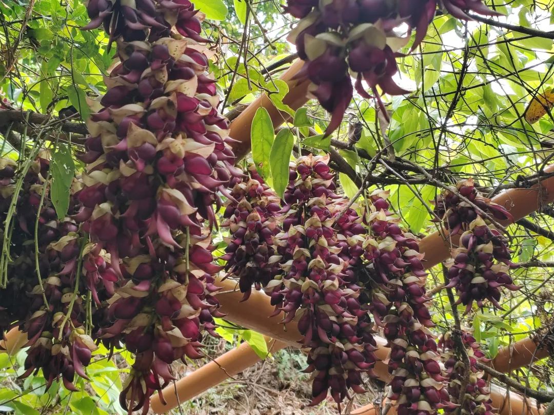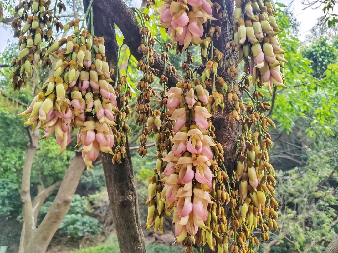 禾雀花垂挂在花廊上,花形玲珑可爱