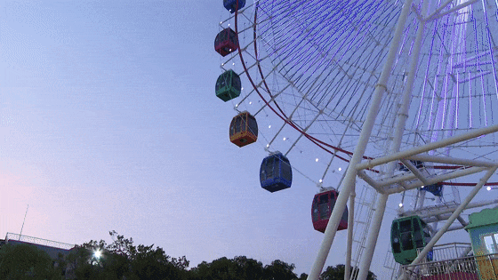 如今园内的摩天轮、游乐场的玻璃水滑道、