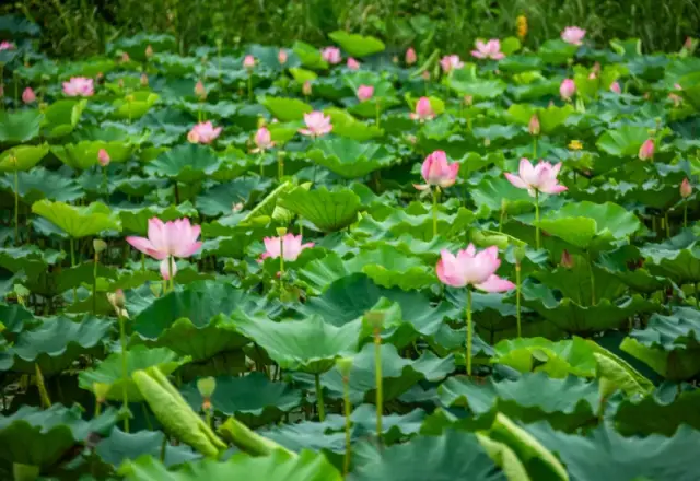 层层叠叠的荷塘宛如一幅水墨长卷,