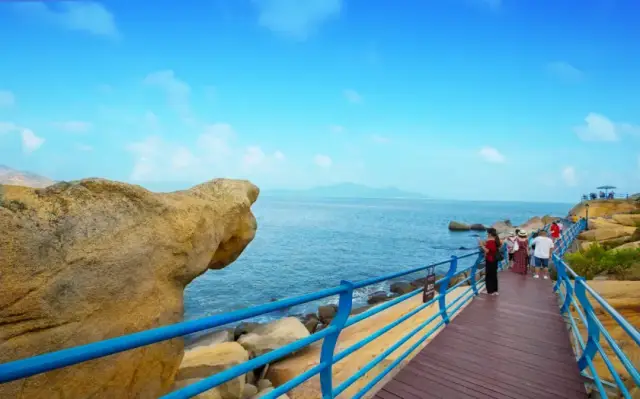 在那琴半岛地质海洋公园,坐拥“五湾揽海韵,五山藏奇观”的绝美景致。碧波轻漾的白马湾、奇石星布的柑果湾、落日熔金的庙湾、礁岩叠翠的峡湾、银沙铺就的浪琴湾,以及3000多米长的环岛木栈道,串起6000多米的海岸画廊……这个夏天,不妨相约那琴半岛地质海洋公园,吹海风、看海景、吃海鲜,无忧无虑地当两天闲散岛民吧!
