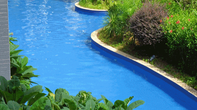 泳池水源取自天然山泉水,清澈见底。
