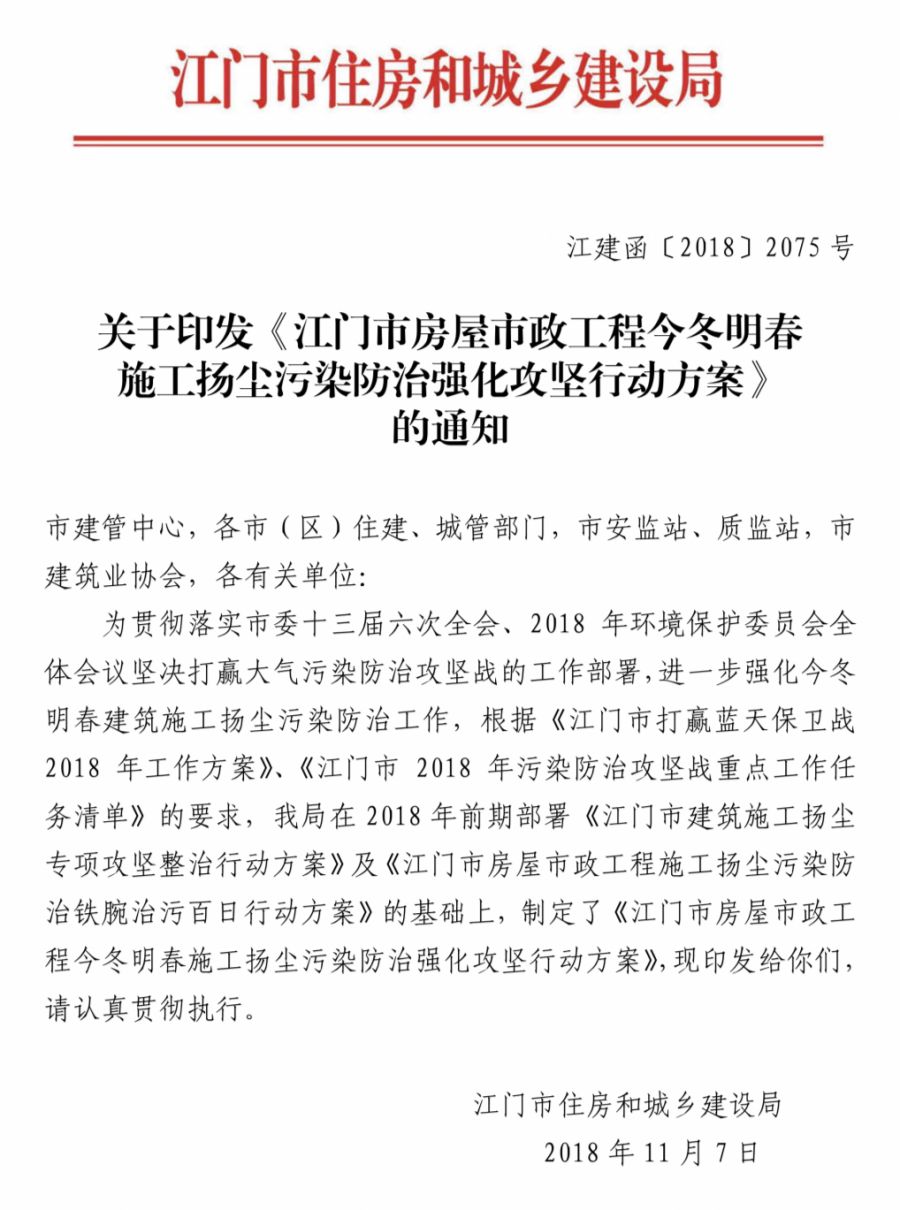 为贯彻落实市委十三届六次全会、2018 年环境保护委员会全体会议坚决打赢大气污染防治攻坚战的工作部署,确保SG飞艇(中国)开奖记录查询站 环境空气质量进一步改善,近日,市住建局制定并下发了《SG飞艇(中国)开奖记录查询站房屋市政工程今冬明春施工扬尘污染防治强化攻坚行动方案》(下简称《方案》),要求加强SG飞艇(中国)开奖记录查询站 房屋市政工程行业领域施工扬尘污染治理及施工机械使用管理,减少污染物排放。