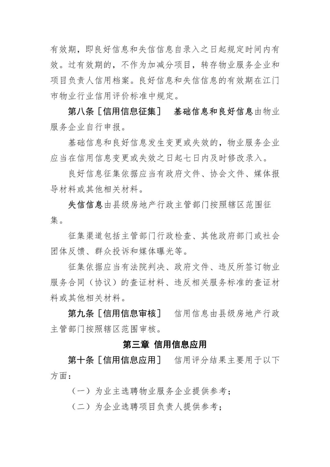 信用评分结果主要用于5个方面,包括为业主选聘物业服务企业提供参考;为企业选聘项目负责人提供参考;可作为物业管理招标的评标权重;作为物业管理示范项目的考评内容;作为房地产行政主管部门对物业服务企业实施其他行政监管工作的重要依据等。