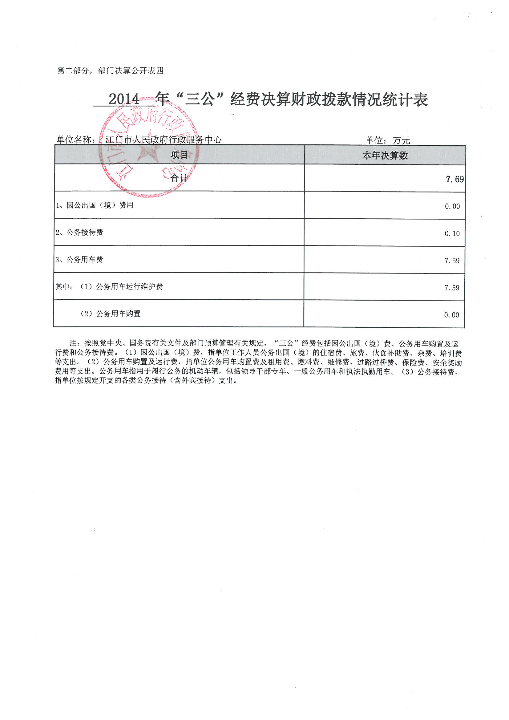 2014 年SG飞艇(中国)开奖记录查询站 行政服务中心(含下属单位)用财政拨款开支的出国(境)经费、车辆购置及运行费、公务接待费(简称“三公”经费)支出合计7.69万元。