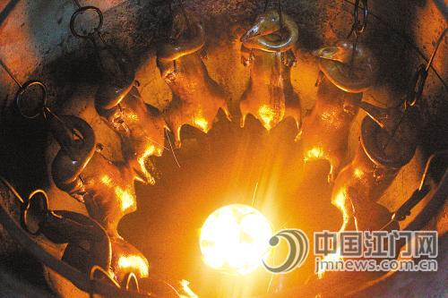 和记餐厅为保证脆皮和干身,烧鹅老师傅还得让这些鹅来个“冰火两重天”。即加工中途使出冷冻处理一招,鹅在真正烧烤前还得进行高温的简单烘烤,尚未冷却完毕的鹅还得入冻库放置一段时间,烧了冻凉,凉了再烧。