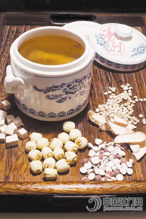 近日,江门阴雨连连,明显感觉到空气中的湿气重了不少。位于上城摩卡6号106铺的汤府,推出了一道四神汤,这汤有健脾祛湿的功效。四神汤采用薏米、茯苓、茨实、莲子、淮山、猪肚等食材,炖五六个小时,口感咸鲜。据汤府的梁老板介绍,除了健脾祛湿外,此汤还具有宁神、养胃和治疗消化不良等功效,非常适合此时饮用。