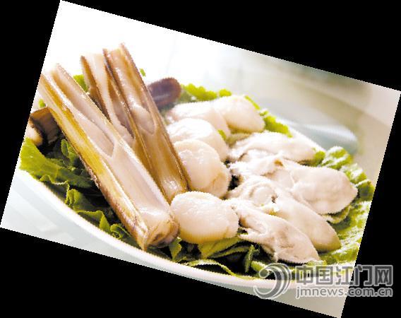 笔者仔细端详,苏格兰圣子王长如筷子,状如竹壳,外壳有种剔透感。这比我们平时见过的圣子要大很多,壳更薄,肉质白净狠多,在港澳餐厅比较常见,两三只就有1斤重;而美国生蚝的“裙边”则比一般的生蚝短很多,看!雪白的蚝身,圆鼓鼓的肚子,一口咬下,里面的肉质如豆腐脑般细腻,还可以看到黄色的膏汁,难怪食客们看得两眼发光;加拿大A级带子则嫩滑鲜甜,体型比澳洲带子大一倍,是贝壳类中的珍品,用其做火锅盆菜,觉对正!