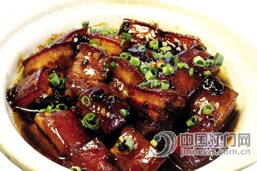 首先亮相的是一款上桌时仍会“滋滋”响的“豆豉扣腩肉”。色泽与红烧肉相似,但酱油的颜色稍微浅一些,筷子还没来得及动工,豆豉的独特香味与土猪肉腩的惹味一拍即合,诱人肉香飘香满堂,大伙都要垂涎欲滴了。我立马进攻,一夹,肉质柔软中带着韧劲,猪皮与肥肉部分相对较厚,但与瘦肉的搭配是黄金比例。一咬,先软后绵,细细咀嚼,皮质的柔韧感才凸显出来,肥肉部分入口即化,肉香萦绕在舌尖;瘦肉则厚实回甘。最Q的是黏在肉上的豆豉,其色泽乌黑油润、豉肉松化、豉味浓香醇厚。豹哥是揭阳人,但一直做着粤西菜,对阳江菜与湛江菜是颇有心得。“不管做什么菜,添一小把豆豉,便能化腐朽为神奇,变无味为有味。一颗半粒豆豉下肚,口舌生津,齿颊留香,回味悠长”饭友团的发起者“阳江林”(外号)兴奋说道。“这土猪肉来自湛江,由于从小粗生粗养,养足9个月才出栏。肥肉长进瘦肉中,瘦肉分外香,而肥肉则香软,搭配豆豉的甜酱香,炎炎夏日吃一块,不腻喉还有种夏日的甜蜜”豹哥的风趣惹得大伙合不拢嘴。