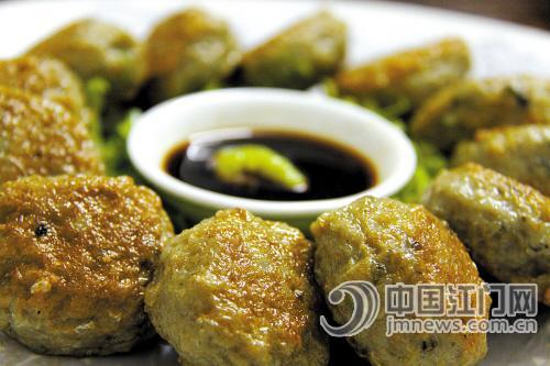 “鹏一”鱼饼也相当出名。鱼肉全来自土鲮鱼,口感超正。老板冉总说:“荷塘人制造鱼饼很考究,如加配料搅拌时,是顺时针转还是逆时针转,转多少圈等都是有讲究的。”金黄的鱼饼,外皮香脆,每咬一口满嘴都弥漫着土鲮鱼的嫩香,肉汁紧紧锁在鱼肉中,不干不焦,肉质弹牙爽滑。蘸上芥末酱油,食客无不大叫过瘾!