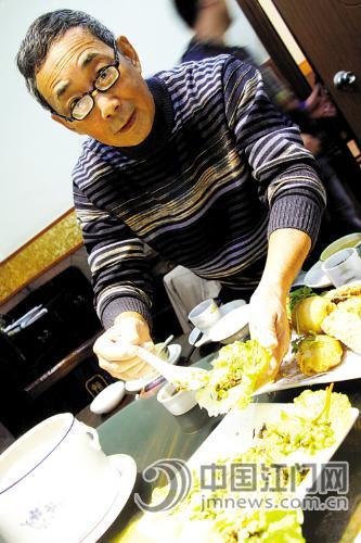 鹅肝营养丰富,味道颇佳,很受食者喜爱。不过,真正好的鹅肝却有讲究。据吕维栋介绍,在鹅肝中,粉肝是上乘品,质软且嫩。用上乘的材料要做出好菜并不容易。吕维栋独创的酥炸鹅肝卷,看似简单,却是本次美食之旅最出彩的一道,味道最美。入口只觉外层香脆,内层酥软,细细咀嚼,还有马蹄的清爽,原来吕师傅在鹅肝中“加了料”。“肝清洁后混合马蹄粒等配料,蘸上面粉下锅炸上片刻。吃时再配上美食顾问黄国治特制的酸梅酱,酸甜中进一步提出鹅肝的清香,很有西部风味。”吕维栋说。