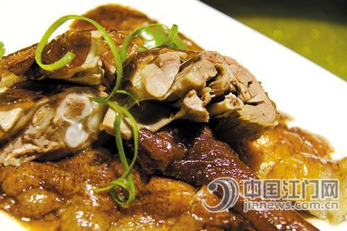 鹅肝营养丰富,味道颇佳,很受食者喜爱。不过,真正好的鹅肝却有讲究。据吕维栋介绍,在鹅肝中,粉肝是上乘品,质均软且嫩。用上乘的材料要做出好菜并不容易。吕维栋独创的酥炸鹅肝卷,看似简单,却是本次食途中最出彩的一道,味道最美,入口只觉外蹭香脆,内层酥软,细细咀嚼,还有马蹄的清爽,原来吕师傅在鹅肝中“加了料”。见同行者钟爱吃鹅肝,吕维栋说:“要取得好的粉肝,鹅在宰杀前必须先饿一晚,然后取纯净的肝。肝清洁后混合马蹄粒等配料,蘸上面粉下锅炸上片刻。吃时再配上黄国治老师特制的酸梅酱,酸甜中进一步提出鹅肝的清香,很有西部风味。