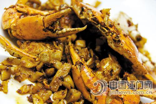 小时候,最喜欢的其中一道菜式便是炒花蟹。位于水南路的三辣馆,是江门有名的吃蟹专门店。老板“蟹鹏”根据江门人的口味,改良并研发了一道萝卜仔炒辣蟹。配料较为单一,只需秘制萝卜仔,但有着食客为之倾倒的神秘酱料——三乜酱。“蟹鹏”说:“萝卜仔除了风味独特之外,包容性很强。当其与肉蟹‘撞在’一起时,便能马上转到配角的位置,并尽可能带出蟹的鲜味。”笔者只见酱料一下锅,萝卜仔和肉蟹便演绎着一场“水陆大汇演”。虽然炒的时间不长,但萝卜仔却充分吸收了酱料的味道。混有萝卜仔浓郁香气的酱汁缓缓渗透进蟹壳内,此时再放适量“川云贵辣椒油”,锅内涌出独特的香辣味,完全不呛喉,“回锅”一下便能开吃。