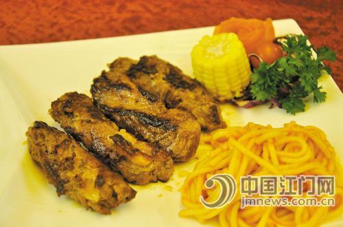 走进简爱,西餐厅后厨部经理李健鸟迎上来。他为我等品评团成员炮制了牛肋条、猪颈肉、猪扒、紫苏牛柳等菜式。食相味道俱全的菜端上来,我们早就按捺不住了,夹起一块牛肋条。哇,好家伙,这牛肋条颇有弹性,入口味道鲜香,里有肉汁爆出,又有嚼劲,你一块我一块,没几下子,便光盘了,大家相视哈哈大笑。莫说现在人们怕吃肉,遇到味道好的肉,个个一样如“饥汉”——牛肋条的诱惑太大了!