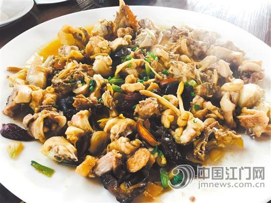 这里的鸡是吃景区自养的谷米和小虫长大的,由于是放养走地,因此鸡肉结实,皮爽肉韧,香味浓郁。采用蒸的烹饪手法,更好地锁住了鸡本身的鲜味,配以木耳、金针菜等,味道更浓郁,吃起来很有鸡味。