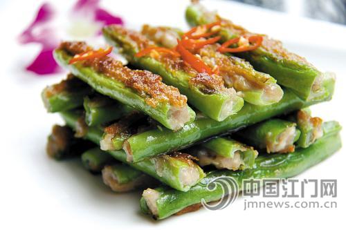 这是一道充满创意的菜式,光看卖相就不忍心吃。翠绿的四季豆像“层层叠”般以“井”字型排列。一口咬下,原来这里头是“内有乾坤”。每一根四季豆被掏空,“夹心”则是新鲜手打猪肉。一口咬下外脆内香,嫩滑之余四季豆的清甜与猪肉的香甜充斥着口腔,挑逗着味蕾!大厨还别出心裁秘制了XO酱,拉了油后的四季豆本身的水分被锁在其中,加上肉馅内的肉汁,二者一拍即合。很不错的前菜!