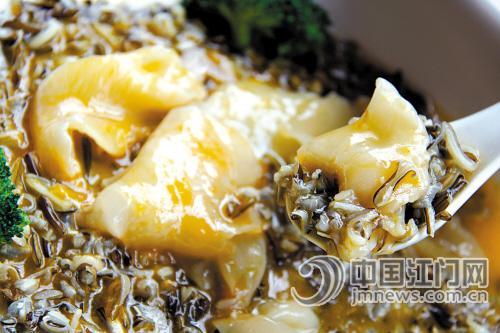 坚果是女士们的至爱,其丰富的维他命E和香脆的口感让不少人对其停不了口。陈师傅把黄鱼子过油定型后,加入生抽,再配上韭菜、菜脯、榄仁等爆炒。好一道下饭菜,鱼子本身口感交干,但吸收了韭菜的水分后,湿度刚好。外层酥香内里软绵还带汁,坚果则甜脆可口。怪不得大伙吃到停不了嘴。