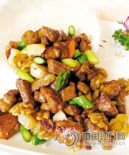 美食推介:日式烤牛仔骨、鲍汁麻香豆腐、核桃雪花牛仔粒、榄仁黄鱼子、软骨鱼头煲、浓汤鱼唇浸青瓜等