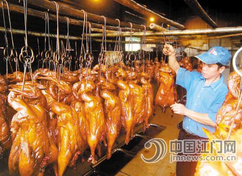 江门人虽然嘴刁,但时刻不忘“健康”二字。肉质好的烧鹅是“吃货”们的至爱。荷塘鹏一农庄的烧鹅正合众多食家的心意,其所选必是开平马冈鹅,鹅全由自己喂养,五星级的“棚之家”让鹅有充分活动的空间,只为谷粒与新鲜禾杆草,让鹅肉质结实有弹性。鹏一饮食服务有限公司出品总监刘阳春介绍,少于90天的鹅,油分不足,烧制的时候难以达到皮脆而化的要求,大于120天的鹅,则肉质偏韧骨架太大。