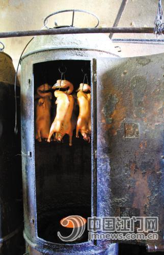 盛记龙凤酒家出品的烧鹅,烘制方法也是用木炭为燃料,但它在制作上却有其独到之处。