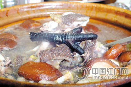原来老板是鹤山人,一次到山里玩,偶然发现了一群“黑鸡”,山里人都叫其“绿壳蛋鸡”,他尝了一把鲜,发现其肉质甘香,不添加任何调料仍分外清甜。其鸡蛋更是蛋白浓稠,蛋黄比一般鸡蛋黄红,口感更鲜。据悉,绿壳蛋鸡在历史变迁中濒于失传,直到上世纪80年代末,才在江南山区偶然被发现,当时仅存一公两母。由于其营养价值高且无污染,后在江西被重点养殖。这类鸡喜食青草菜叶和五谷杂粮,肉质味香鲜甜、口感极好,鸡肉中各种氨基酸明显高于其它鸡种,具有滋补肝肾、大补气血,故有“药鸡”之美誉。