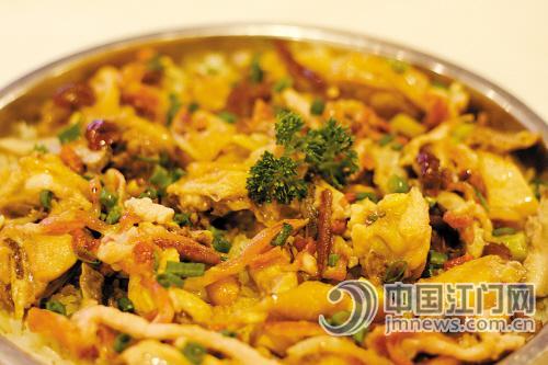 糯米本是一种吃多了会让人感觉腻的食物,但滋味四季厨房的糯米炖鸡却让笔者胃口大开。下锅前,先用人参水浸泡糯米,猛火煮至半熟后再放入腌制好的嫩鸡,并配以红枣、枸杞、香菇、腊肠、腊肉等。鸡肉的香味和香甜的糯米饭合二为一,好一道养生的私房菜。