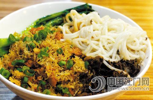 江西南昌的捞粉较有特色,外形和桂林米粉有相似之处。粉质也是纯米粉,吃起来口感香软有嚼劲,米香十足。老板是江西南昌人,他告诉笔者:“我酷爱吃家乡的米粉,在江门的老乡也很多,但是想吃一口家乡的菜很难,所以我就开了这家店。”清新自然的装修风格,带点古色古色的天花与吊灯,此时来一碗家乡的捞粉,思乡之情袭上心头……
