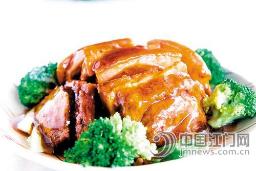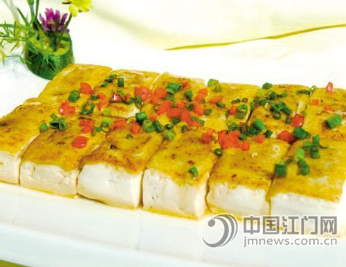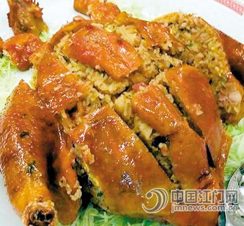 陈皮粉蒸番茄、赤坎煎豆腐角、脆皮糯米鸡、荔芋扣花肉、马钢五味鹅、咖喱明虾球等开平特色菜。