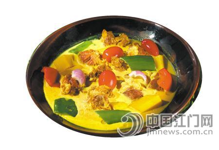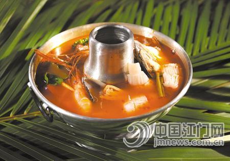 “冬阴功汤是泰国名菜,是泰国菜中的经典代表作。”卢月胜向笔者推荐。“冬阴”是酸辣的意思,“功”是虾的意思,翻译过来其实就是酸辣虾汤。不过冬阴功汤稍辣,其中还放有大量咖喱,不过习惯了之后不少人倒是会贪恋上它。