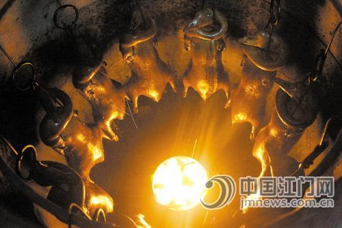 和记餐厅为保证脆皮和干身,烧鹅老师傅还得让这些鹅来个“冰火两重天”。即加工中途使出冷冻处理一招,鹅在真正烧烤前还得进行高温的简单烘烤,尚未冷却完毕的鹅还得入冻库放置一段时间,烧了冻凉,凉了再烧。 文/图 冯劭君 黄协广