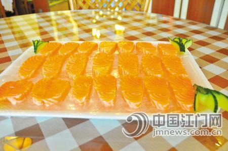 餐厅的行政总厨潘绍忠对笔者介绍说:“我们餐厅迄今已经营了三年多时间,专做三文鱼宴。由于三文鱼做法多样,口味独特,因而我们餐厅受到众多食客追捧,在江门已小有名气。”
