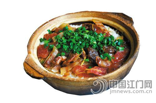 鸣泉山庄的双水腊味煲仔饭很有水准,腊味结实有酒香,油分渗入饭中,饭粒沾了油香,每一口同样惹味。能做出这样的效果,因用上好的新会双水腊味。