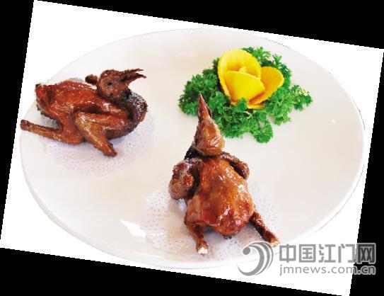 第一道上桌的是“陈皮鸽”。据丽宫国际中餐行政总厨阮兆佳介绍,制作陈皮妙龄鸽必须精选出生满13天的中山石岐妙龄鸽,以确保肉质鲜嫩爽滑。然后,配以10年陈皮及多种酱料生腌,放入空调房风干,以保持鸽肉的水分,再入油锅生炸而成。