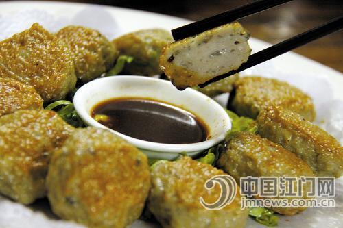 要煎出好的鱼饼,除了食材要好,打鱼胶的功夫更要到位。平日在菜市场见到师傅打鱼胶,都保持顺时针方向搅拌,因为顺时针打鱼胶,顺手、好用力。如果不同方向反复搅拌,则不易成胶。大厨说:“荷塘人制造鱼饼时很考究,如加配料搅拌时,是顺时针转还是逆时针转,转几多圈等都是有考究的。”