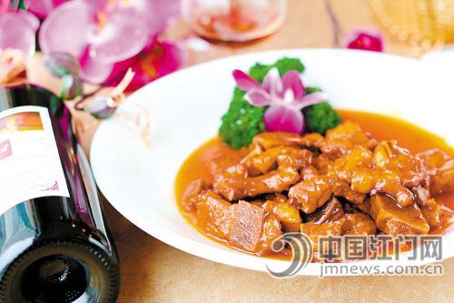 当牛仔骨差不多熟透的时候,大伙都以为可以开吃了,但溢哥说还不可以,接着便淋上一层秘制红酒,再点火一烧,红酒因子缓缓渗透进牛仔骨中,只需几秒钟,牛肉的香味与红酒合为一体,比一般的焗牛仔骨自然香甜多了。外酥香而内厚实有口感,肉汁充斥着舌尖,淡淡红酒香充斥着喉咙,牛肉酥软中带嚼劲,正!即日起可预订谢师宴,498元/围起。