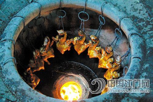 时间还没到,香气便一阵一阵往大伙鼻子里钻,笔者有些按捺不住了。师傅掀开锅盖的一瞬间,肉香味扑来,走地鸡鸡皮由白变橙红色,油润光亮。鸡内的油汁,顺着已经干酥紧致的表皮,滴答、滴答地滴在炭火上,“滋啦滋啦”唱起美食之声,单是视觉、听觉、嗅觉的享受,就已经够吃货们回味了。采访将近结束时,烧鸡端出来了,整个色泽更加鲜艳,香味也更为浓郁,表皮之下肉感弹性十足,香嫩多汁。在酥脆的表皮之下是鲜嫩多汁的鸡肉。咬一口,皮脆肉滑,撕扯中连纤维都可以看得见,多余的油脂已经排除体外,剩下的就是鲜美肉汁混合着料汁,咸淡适中。虽然烧鸡很烫手,但完全抵挡不住那香味的诱惑,皮脆、肉滑、骨香、多汁,正!